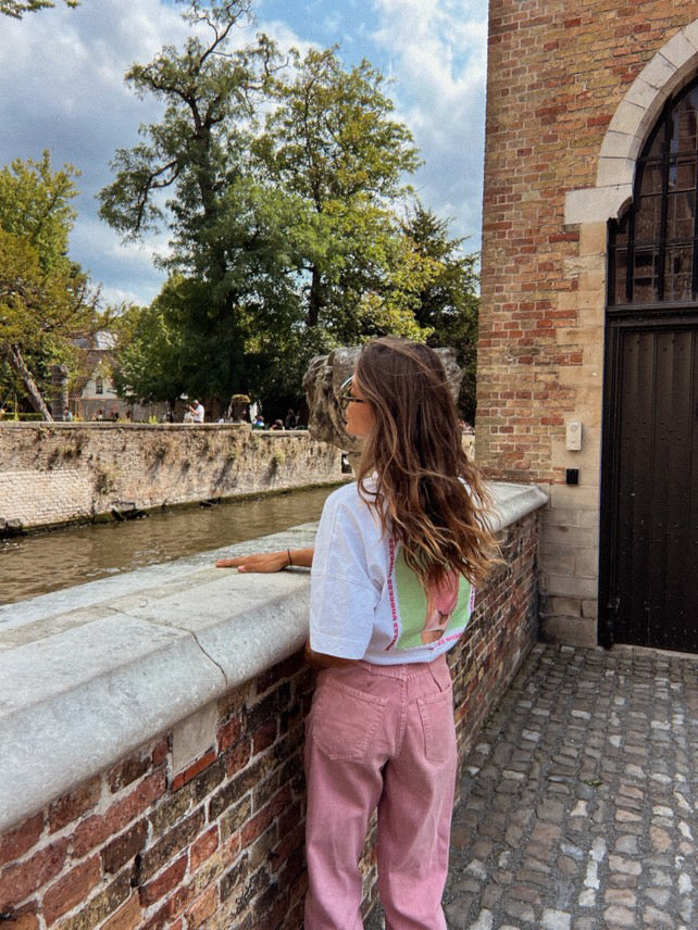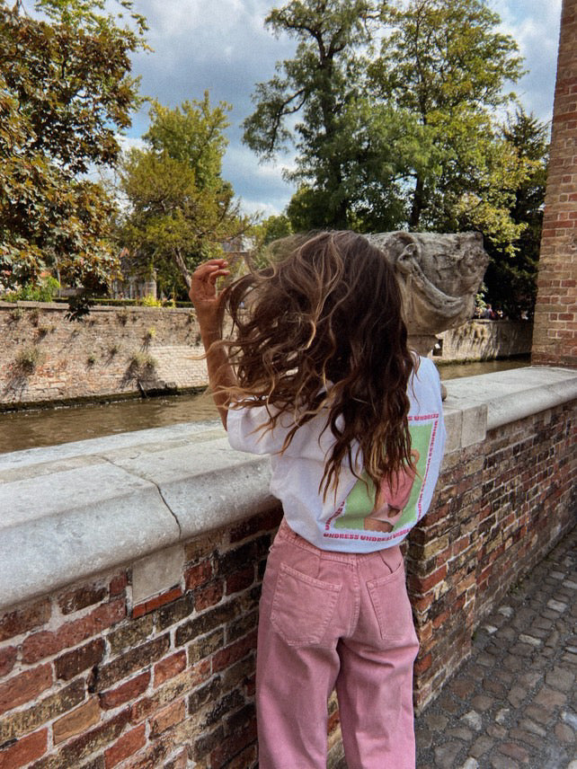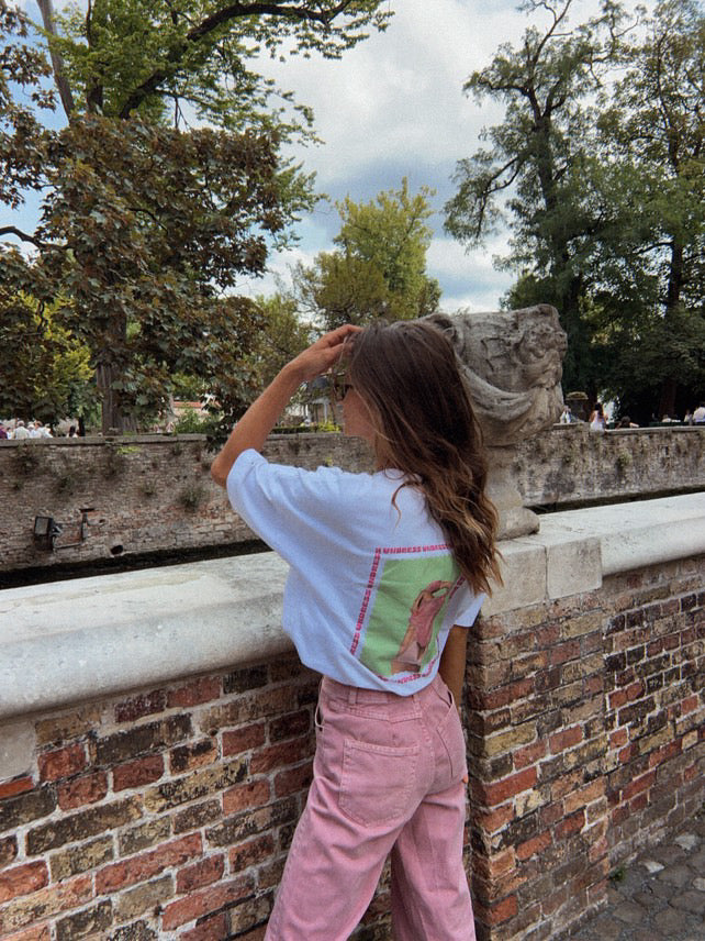 Oversized unisex T-shirt with artwork of the painting “undress” in white.